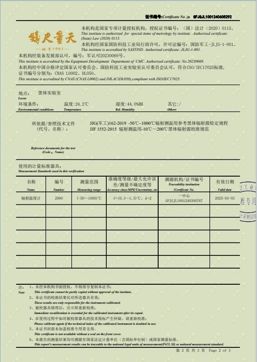面源黑體輻射源(0-80℃)304所校準(zhǔn)證書 2024-6-18 本文被閱讀 9274 次