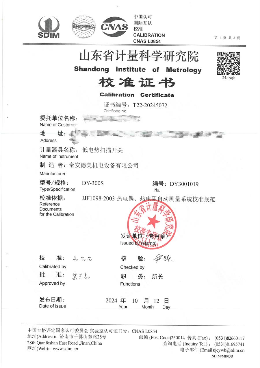 低電勢掃描開關(guān)校準證書 2024-10-15 本文被閱讀 5959 次