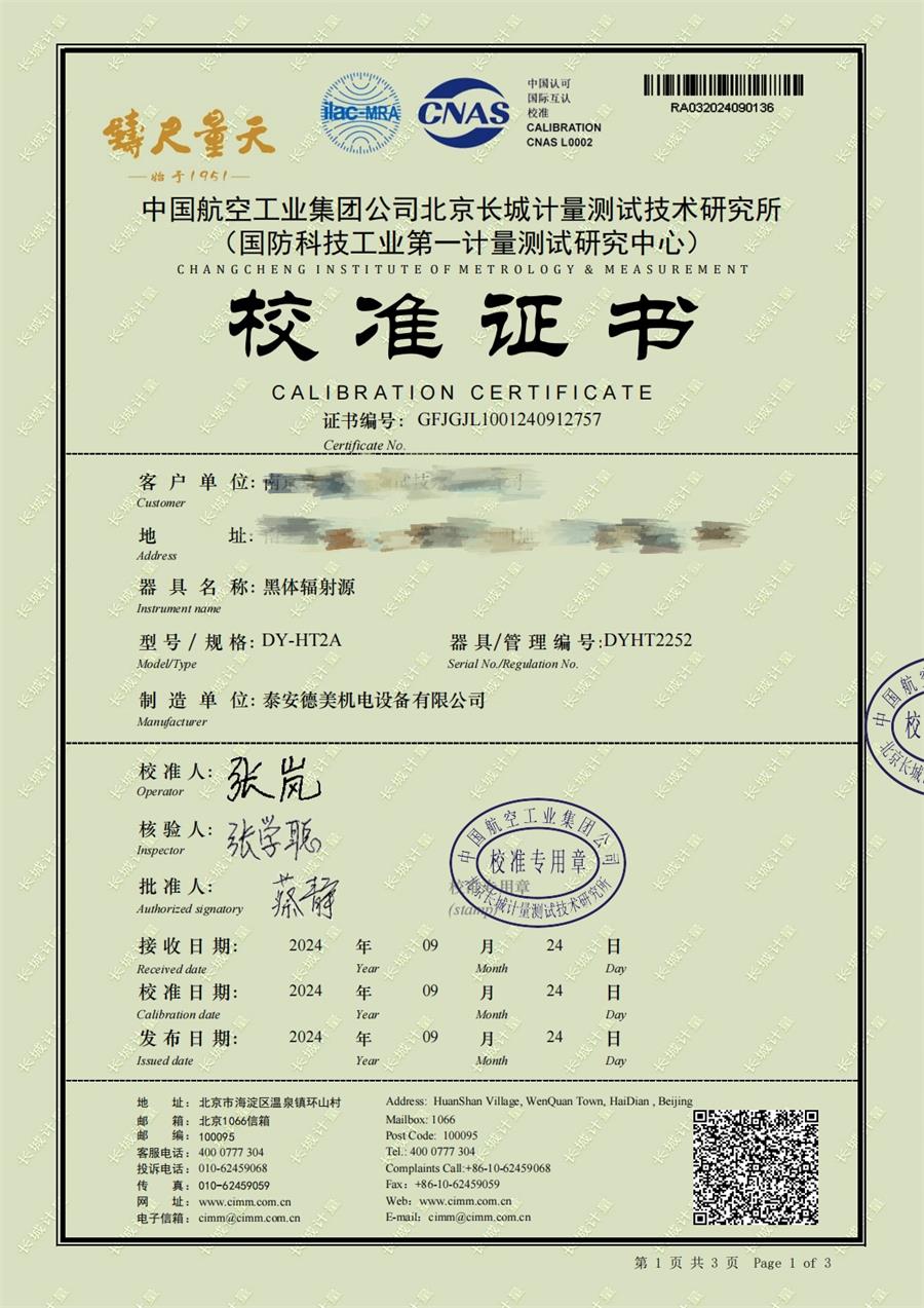 黑體輻射源(50-700℃)校準證書 2024-10-17 本文被閱讀 6329 次