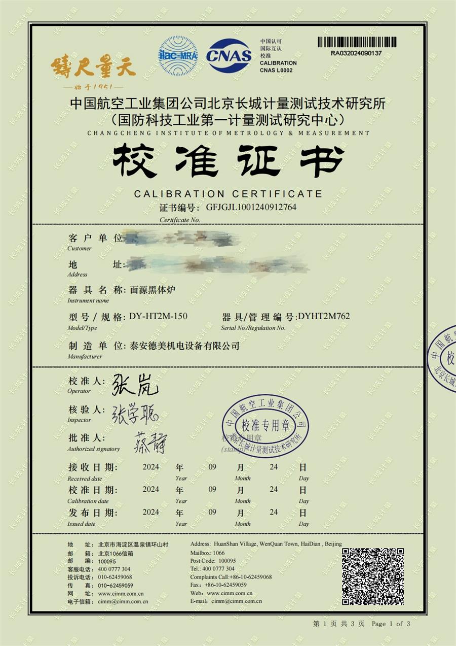 | 上一條:黑體輻射源(50-700℃)校準(zhǔn)證書 | 下一條:水三相點瓶凍制與保存裝置校準(zhǔn)證書 |