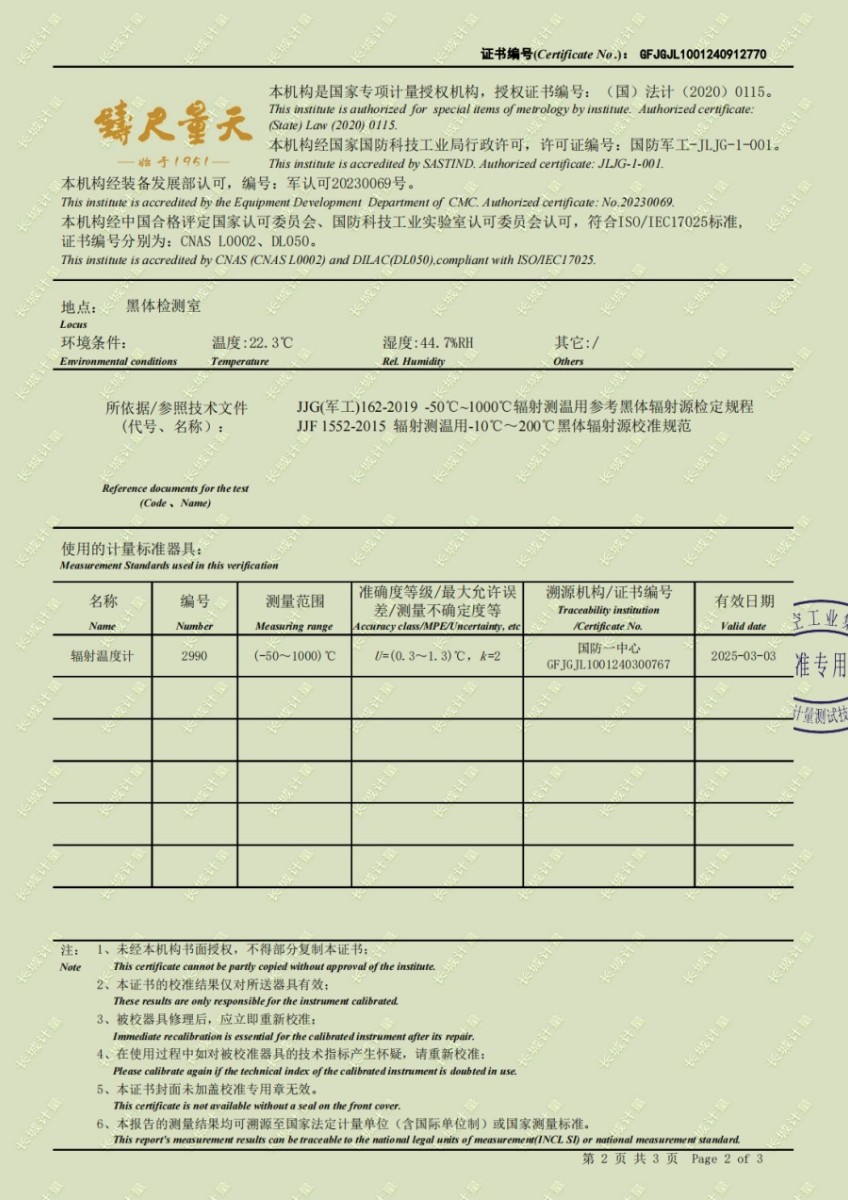 | 上一條:面源黑體爐(室溫+5-500℃)校準(zhǔn)證書 | 下一條:水三相點瓶凍制與保存裝置校準(zhǔn)證書 |