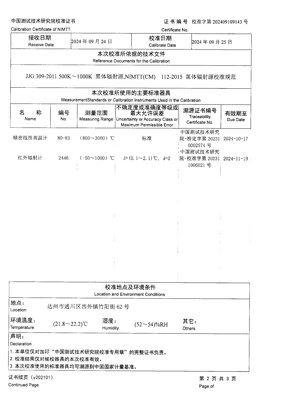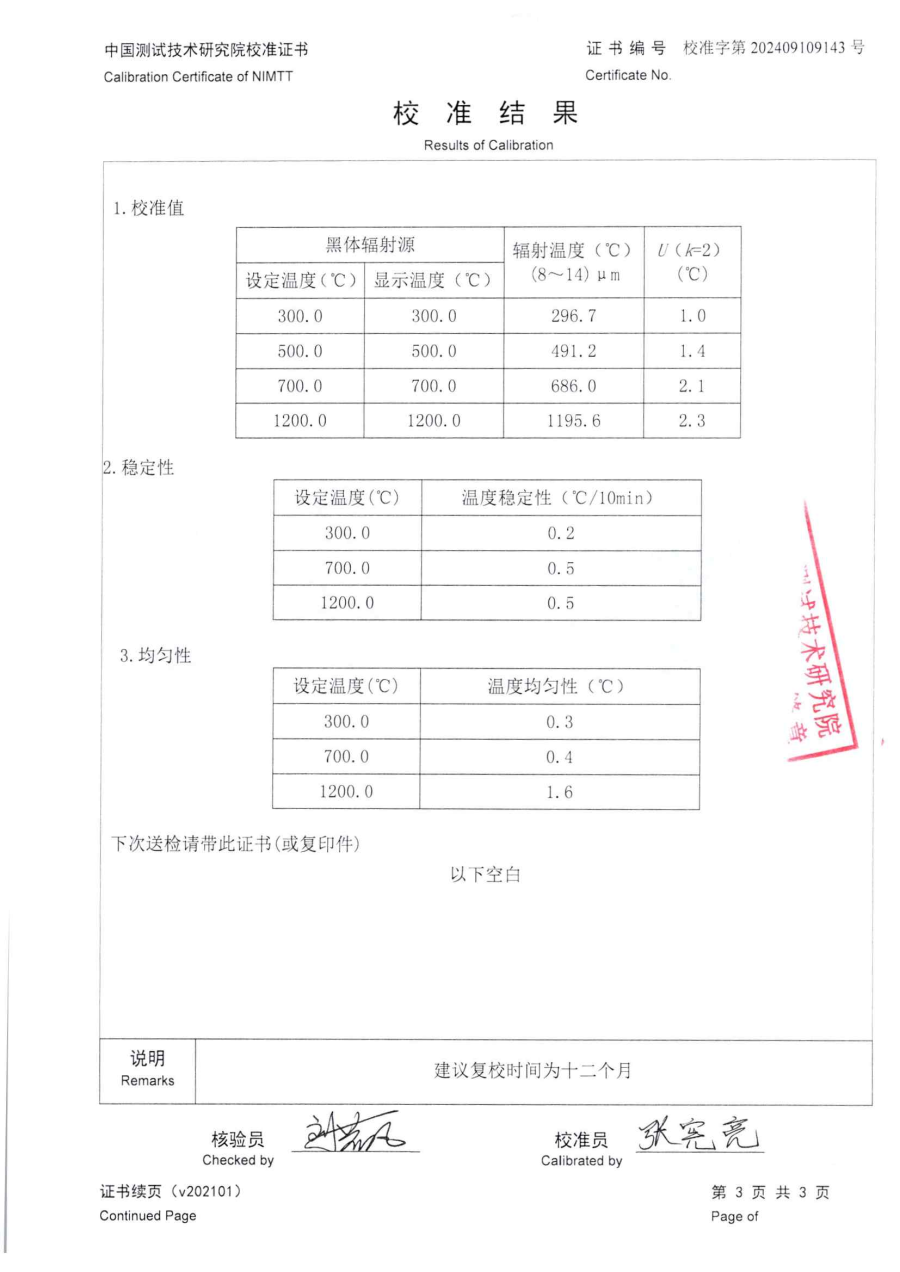 高溫腔式黑體校準(zhǔn)證書(shū) 2024-10-21 本文被閱讀 7723 次