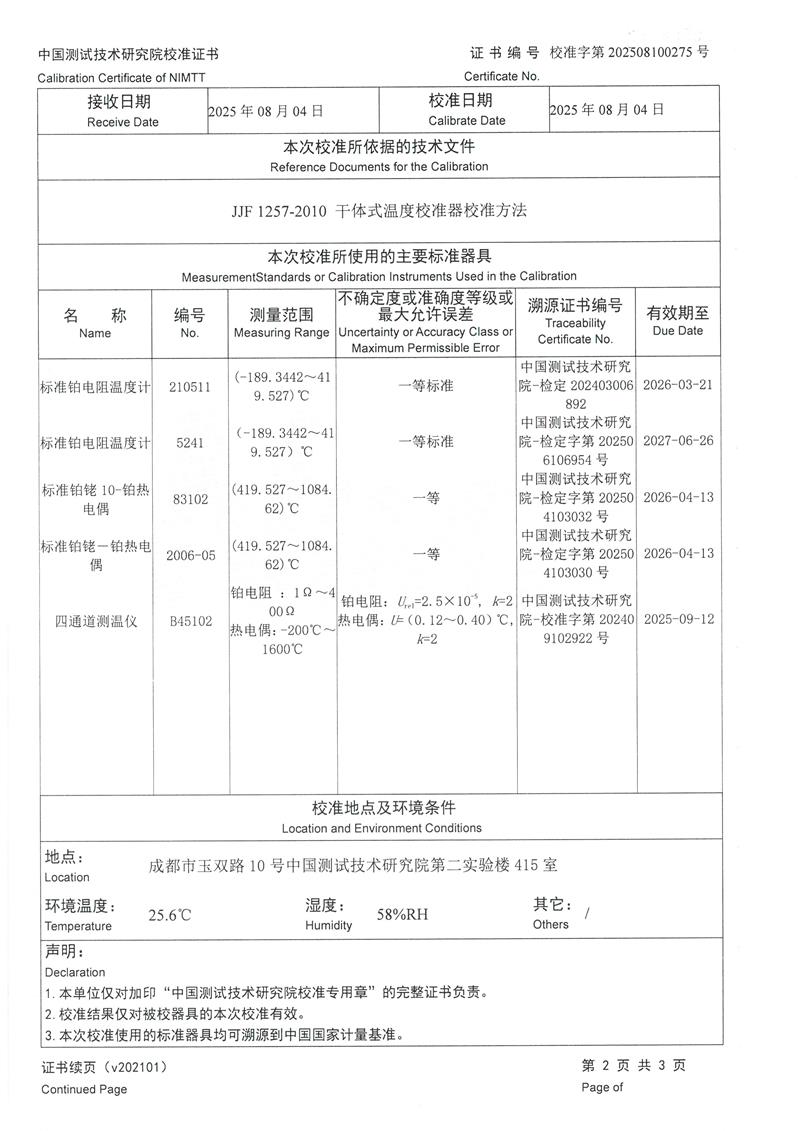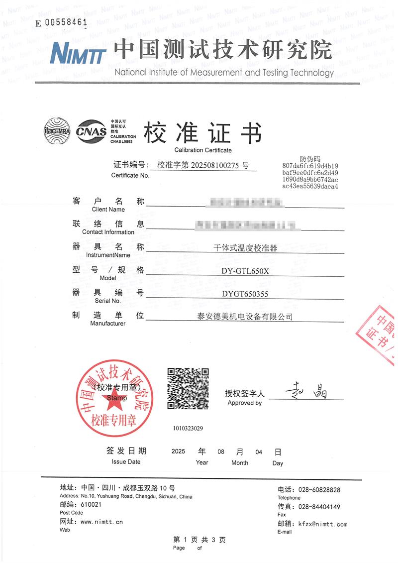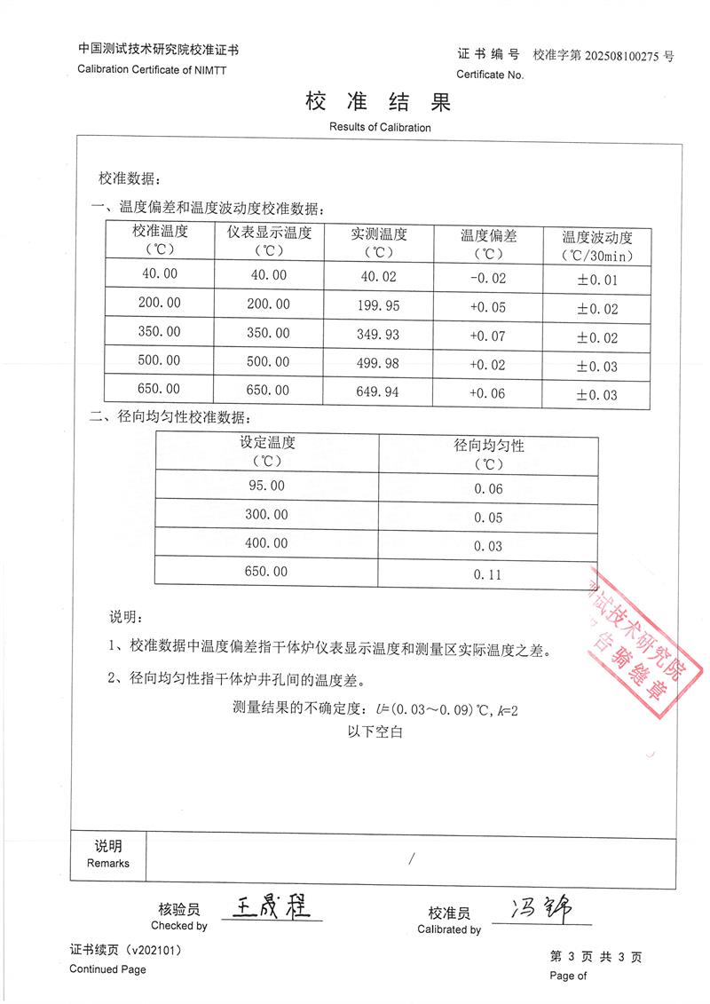 | 上一條:表面溫度計(jì)校準(zhǔn)儀(40-400℃)校準(zhǔn)證書 | 下一條:水三相點(diǎn)瓶?jī)鲋婆c保存裝置校準(zhǔn)證書 |
