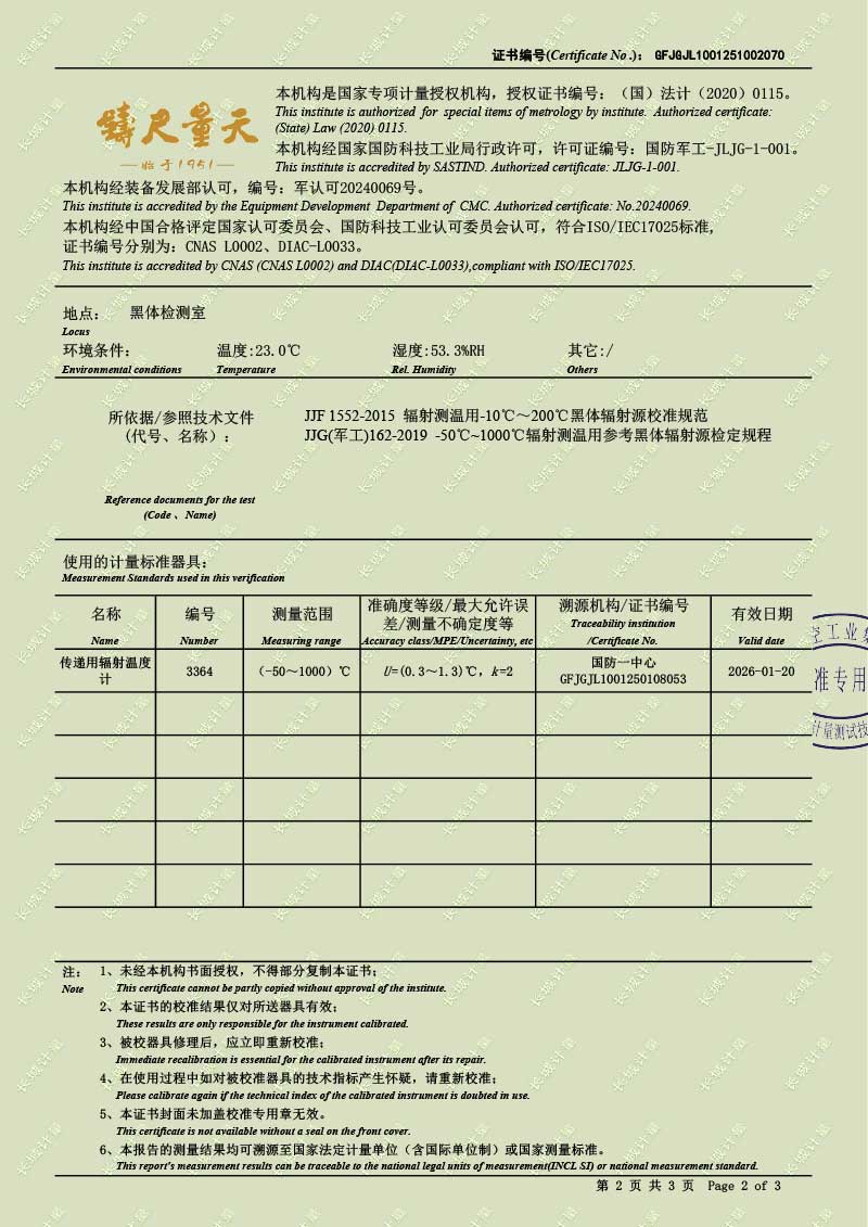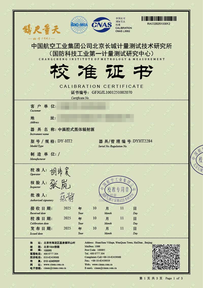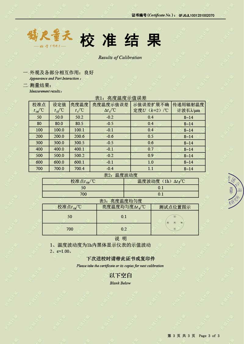 | 上一條:高溫腔式黑體輻射源(700-1600℃)校準(zhǔn)證書 | 下一條:水三相點(diǎn)瓶凍制與保存裝置校準(zhǔn)證書 |