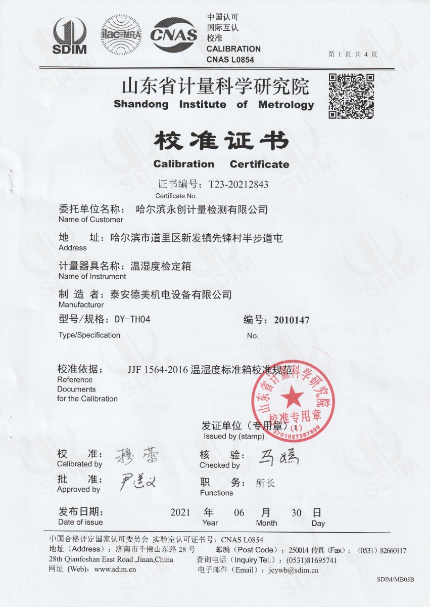 | 上一條:廣東省連平縣質(zhì)量技術(shù)監(jiān)督檢測所-溫濕度檢定箱 | 下一條:水三相點瓶凍制與保存裝置校準證書 |