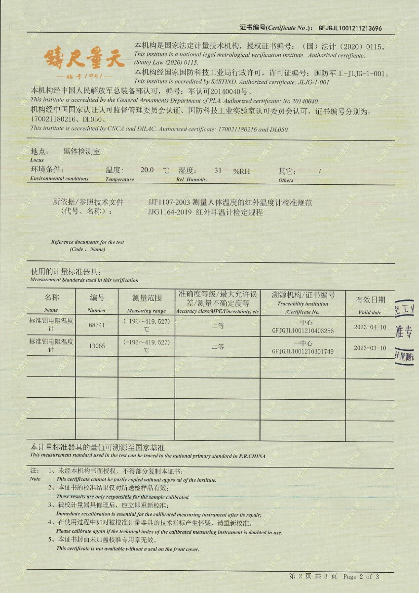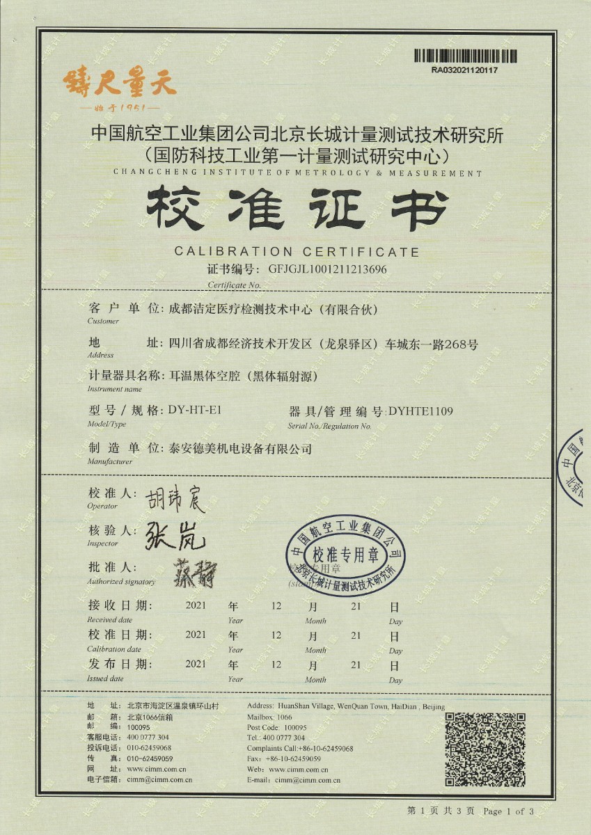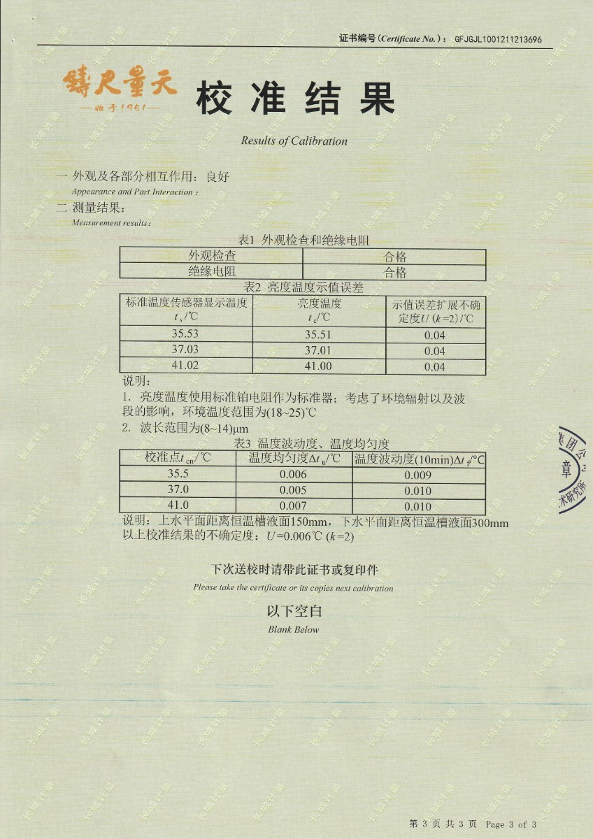 | 上一條:成都潔定醫(yī)療檢測(cè)技術(shù)-額溫黑體空腔 | 下一條:水三相點(diǎn)瓶凍制與保存裝置校準(zhǔn)證書 |
