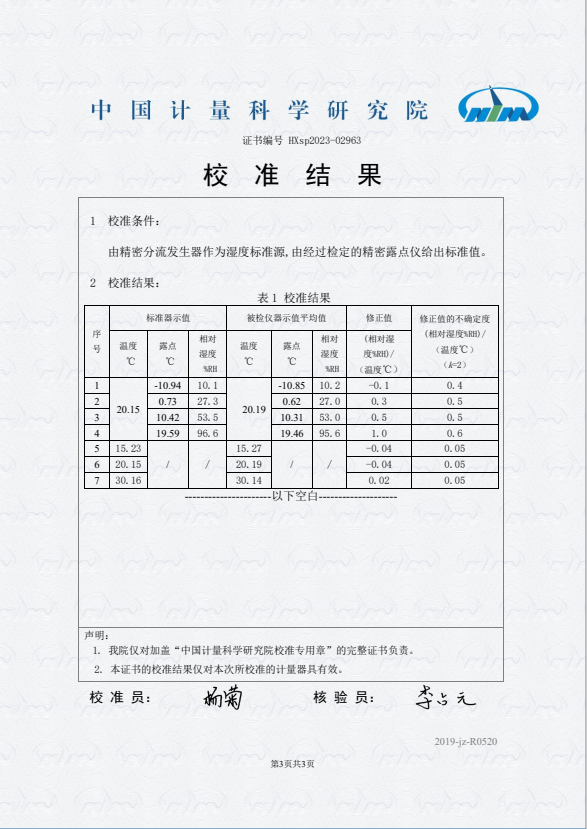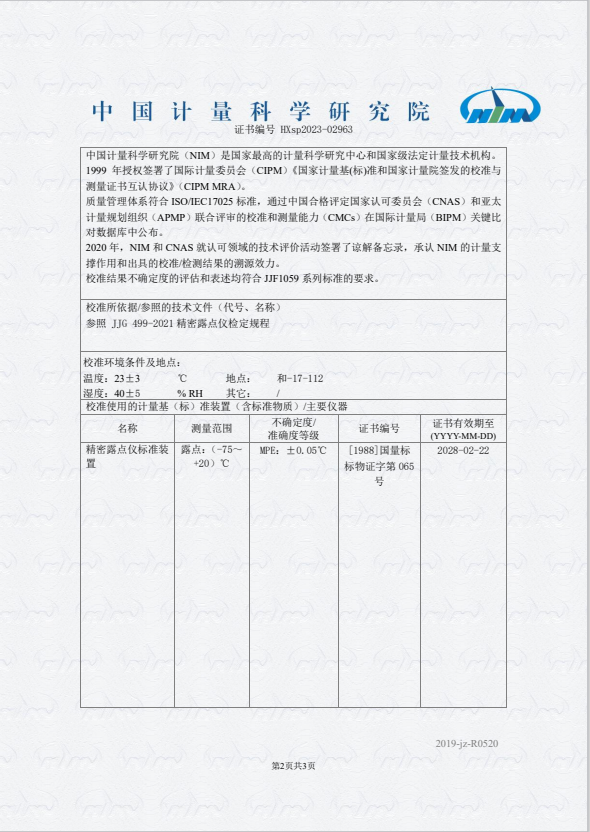 露點儀校準證書 2023-11-9 本文被閱讀 10299 次
