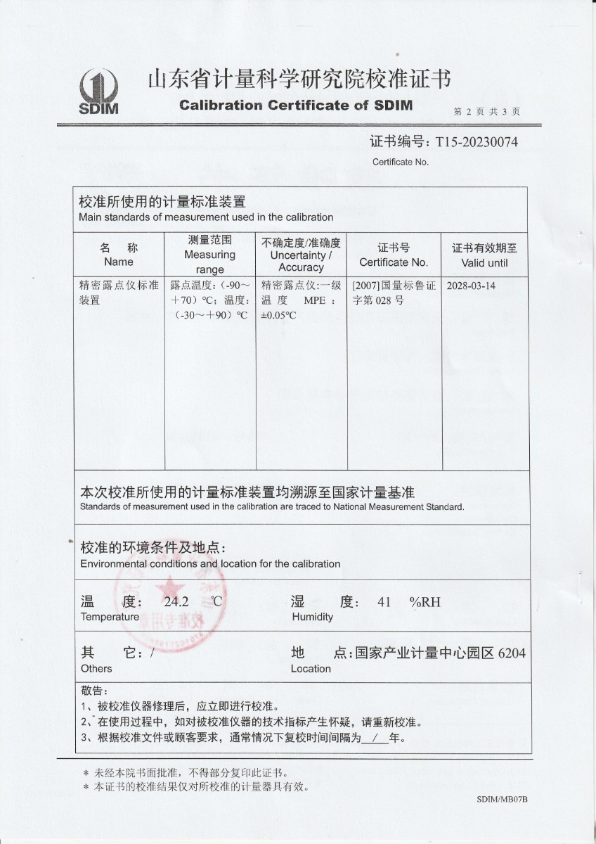 允公計量檢測有限責(zé)任公司-冷鏡露點儀校準(zhǔn)證書 2023-6-25 本文被閱讀 13918 次