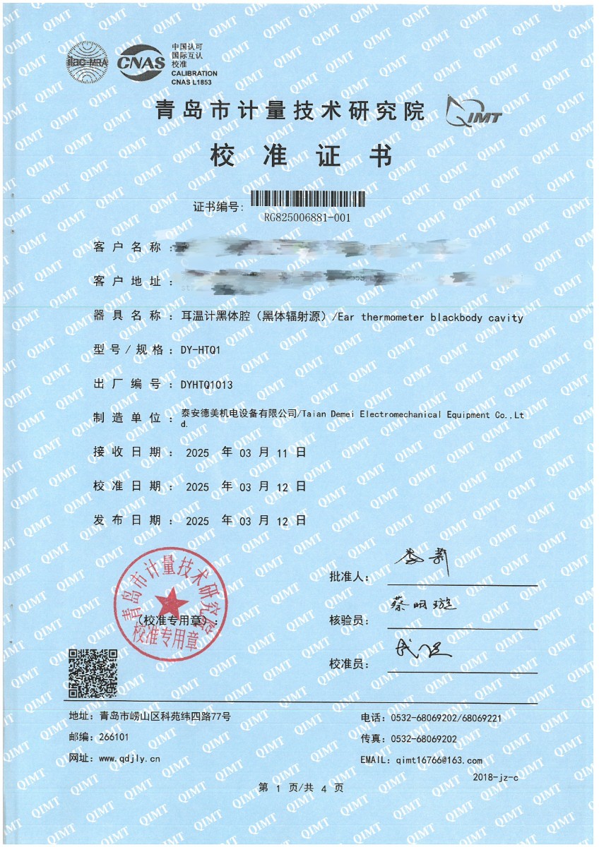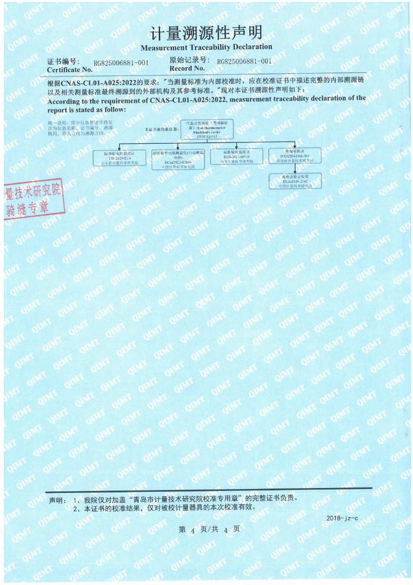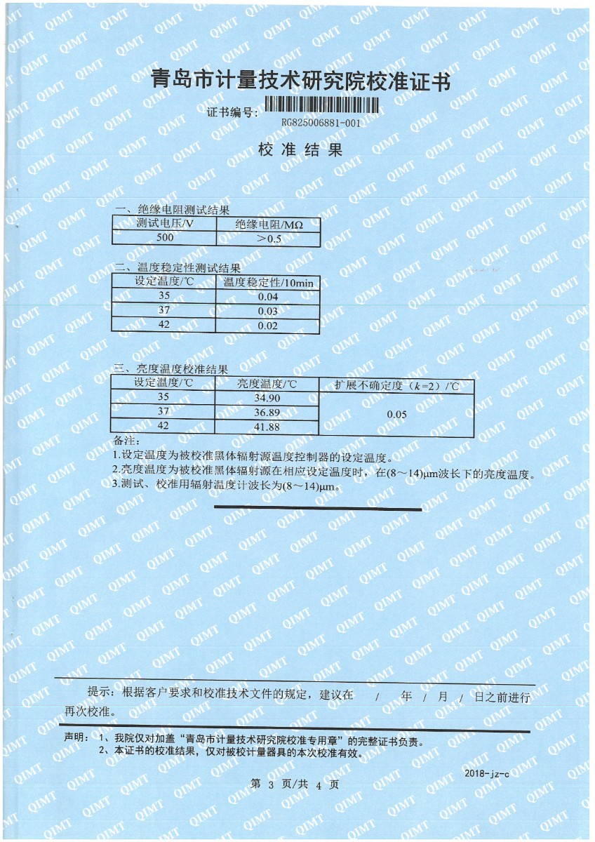耳溫計黑體空腔校準(zhǔn)證書 2025-3-25 本文被閱讀 4669 次