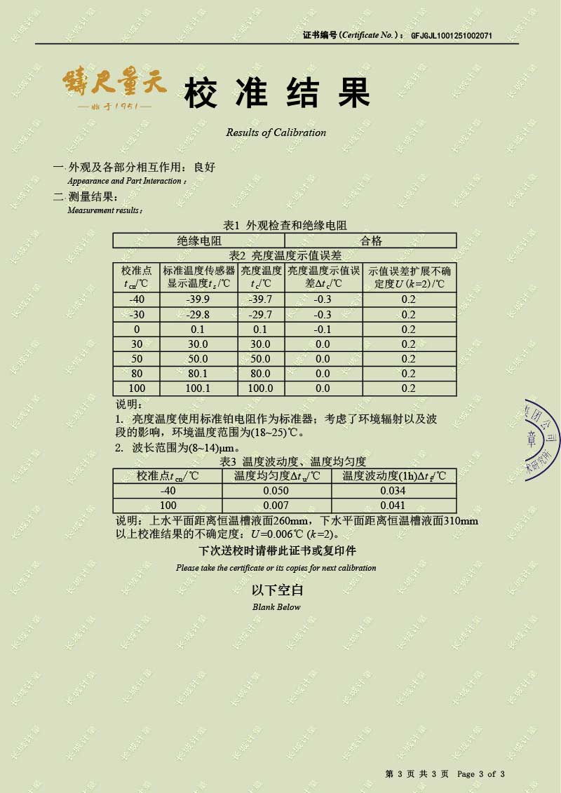| 上一條:溫濕度巡檢儀校準(zhǔn)證書 | 下一條:水三相點(diǎn)瓶?jī)鲋婆c保存裝置校準(zhǔn)證書 |