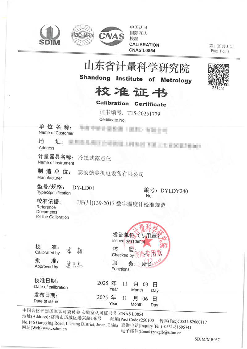 冷鏡式露點儀校準(zhǔn)證書 2025-11-7 本文被閱讀 1593 次