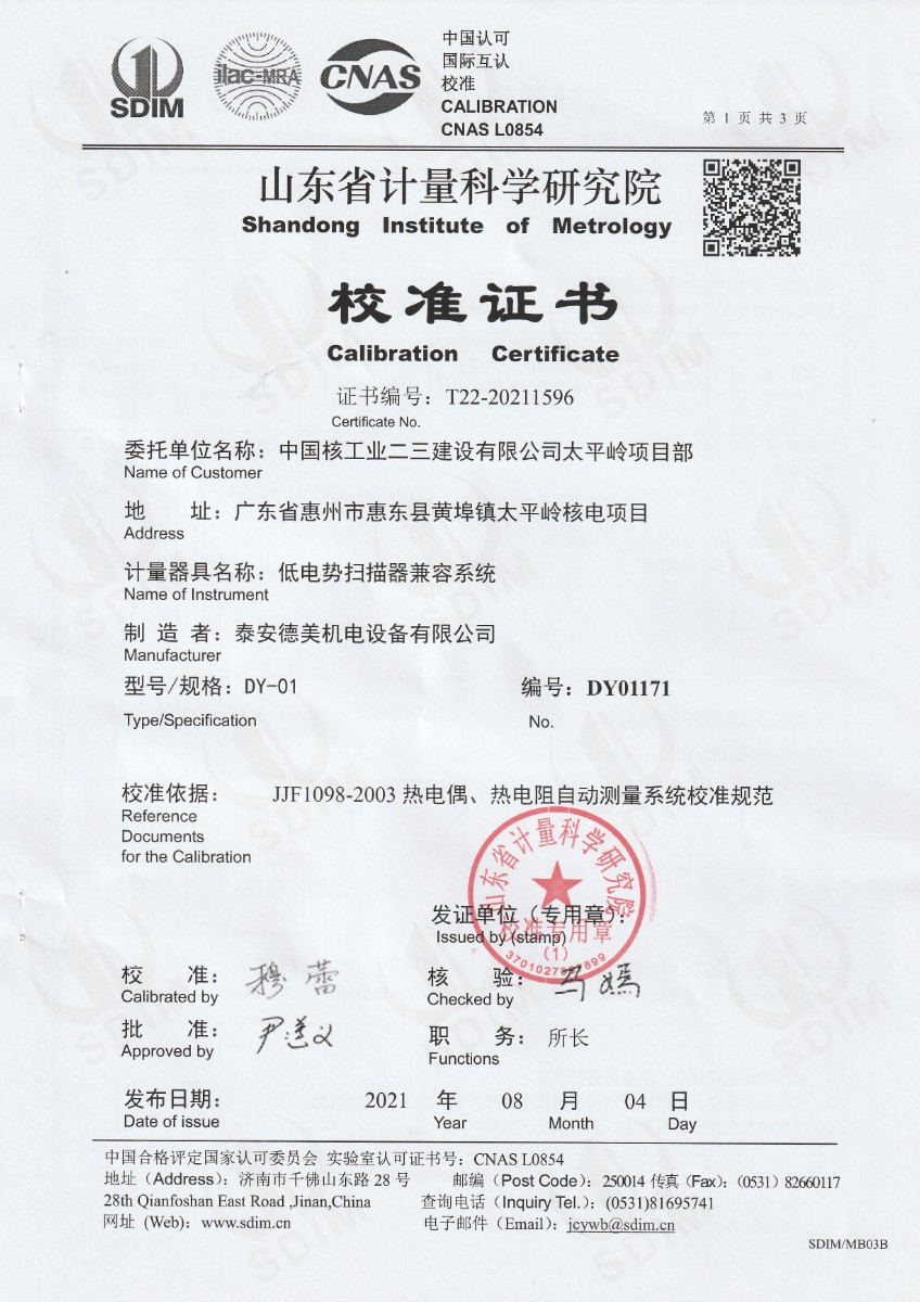 上一條:DY-HTM面源黑體爐,輻射面100mm(-20℃~600℃)下一條:水三相點瓶凍制與保存裝置校準證書