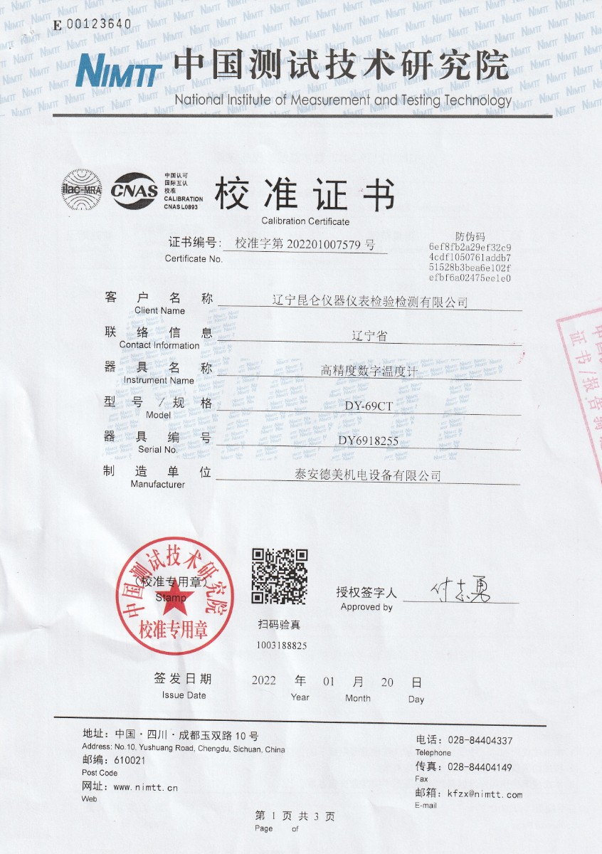 遼寧昆侖儀器儀表檢驗檢測有限公司-高精度數(shù)字溫度計 2022-2-15 本文被閱讀 14279 次
