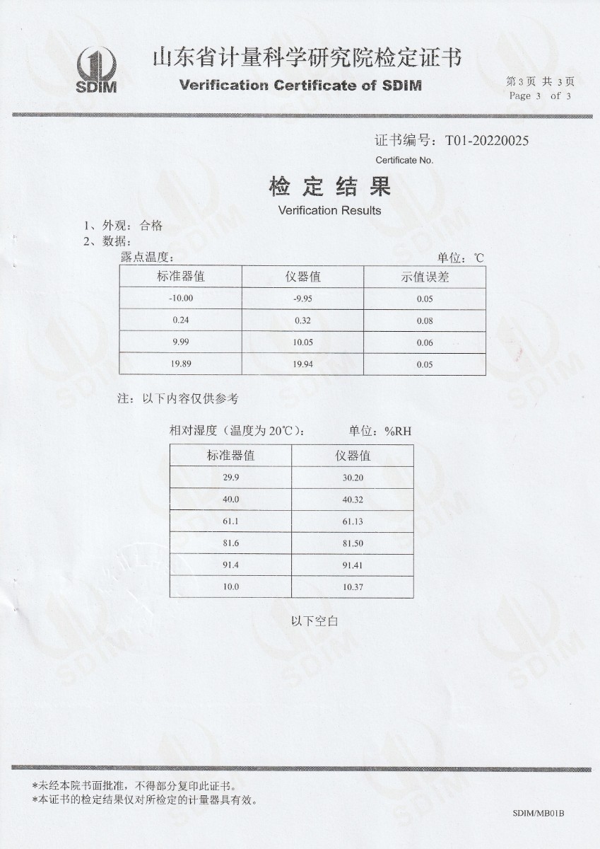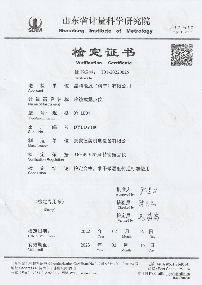 | 上一條:晶科能源(海寧)有限公司-冷鏡式露點(diǎn)儀(溫度)校準(zhǔn)證書(shū) | 下一條:水三相點(diǎn)瓶?jī)鲋婆c保存裝置校準(zhǔn)證書(shū) |
