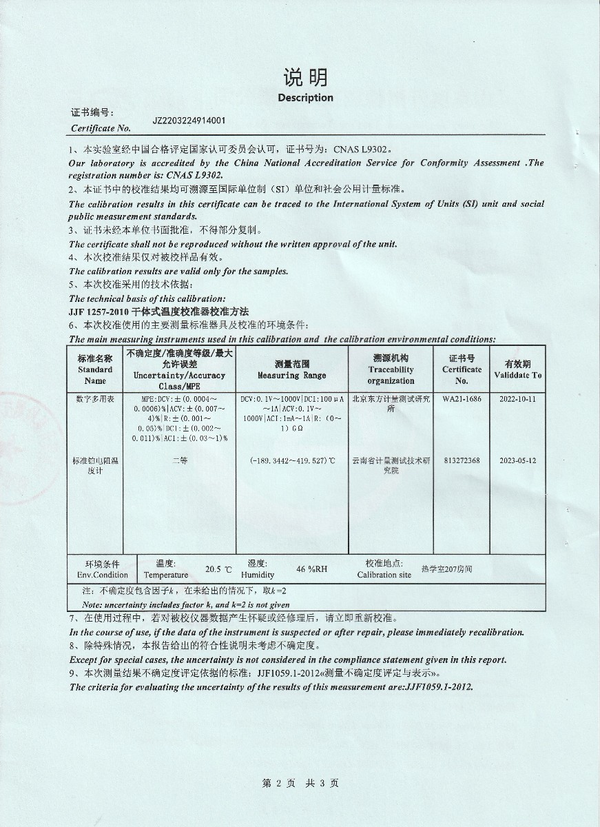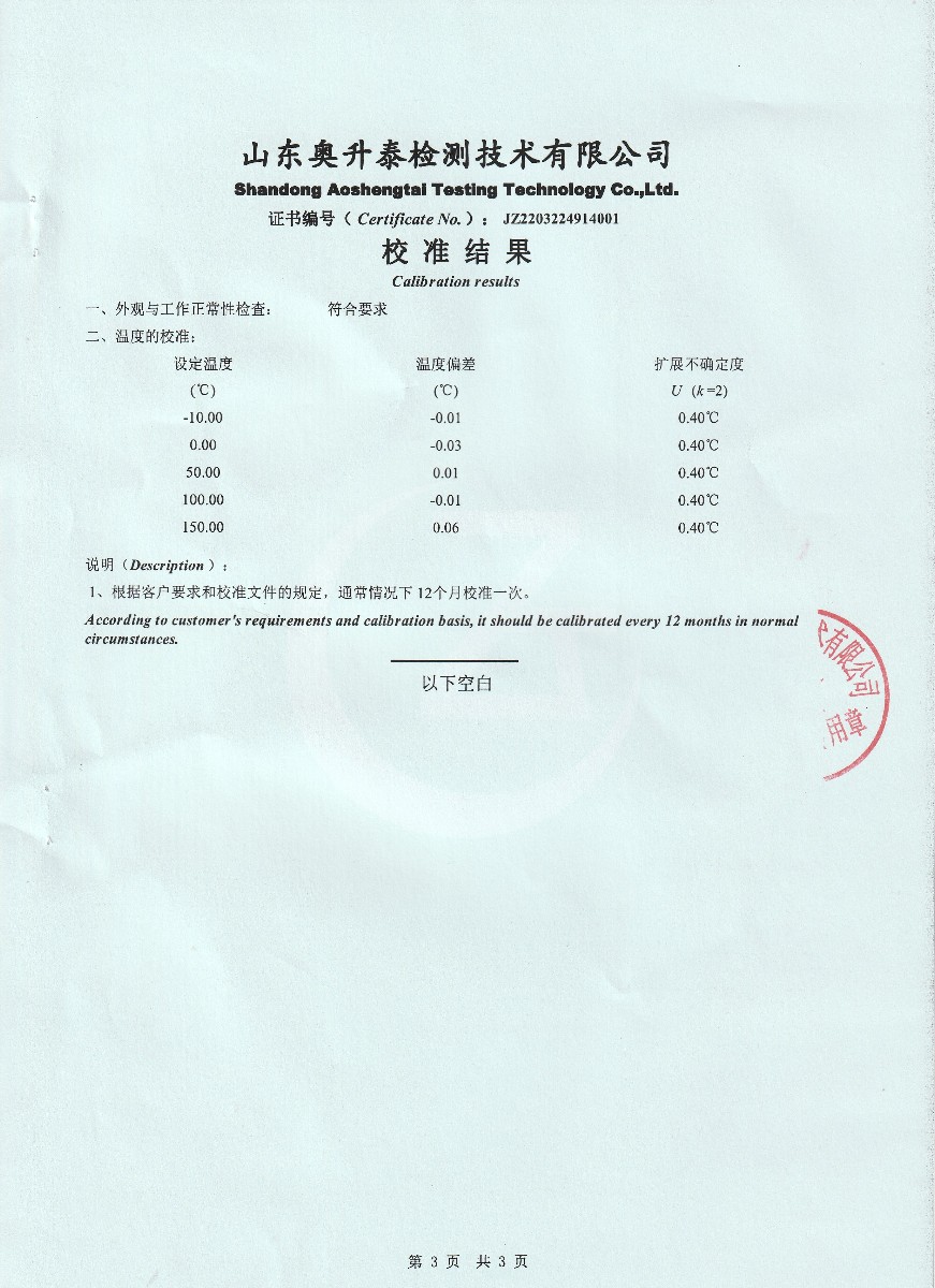 | 上一條:晶科能源(海寧)有限公司-溫濕度檢定箱 | 下一條:水三相點(diǎn)瓶?jī)鲋婆c保存裝置校準(zhǔn)證書 |