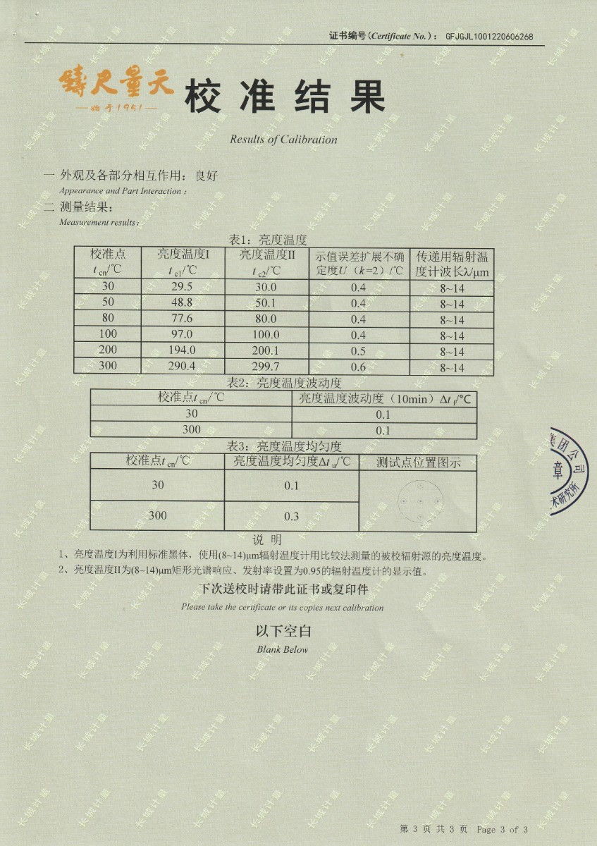 | 上一條:中睿(天津)檢驗(yàn)檢測有限公司-冷鏡式露點(diǎn)儀檢定證書 | 下一條:水三相點(diǎn)瓶凍制與保存裝置校準(zhǔn)證書 |