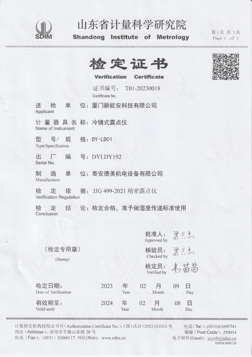| 上一條:廈門新能安科技有限公司 高精度數(shù)字溫度計(jì) | 下一條:水三相點(diǎn)瓶凍制與保存裝置校準(zhǔn)證書 |