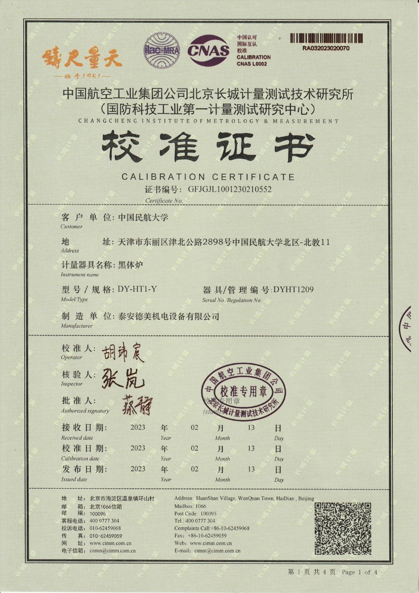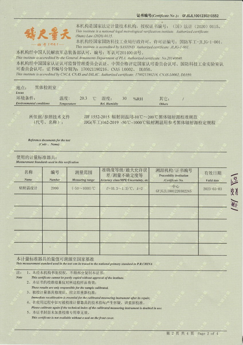 | 上一條:煙臺信泰檢測技術(shù)服務(wù)有限公司 黑體爐 校準(zhǔn)證書 | 下一條:水三相點瓶凍制與保存裝置校準(zhǔn)證書 |