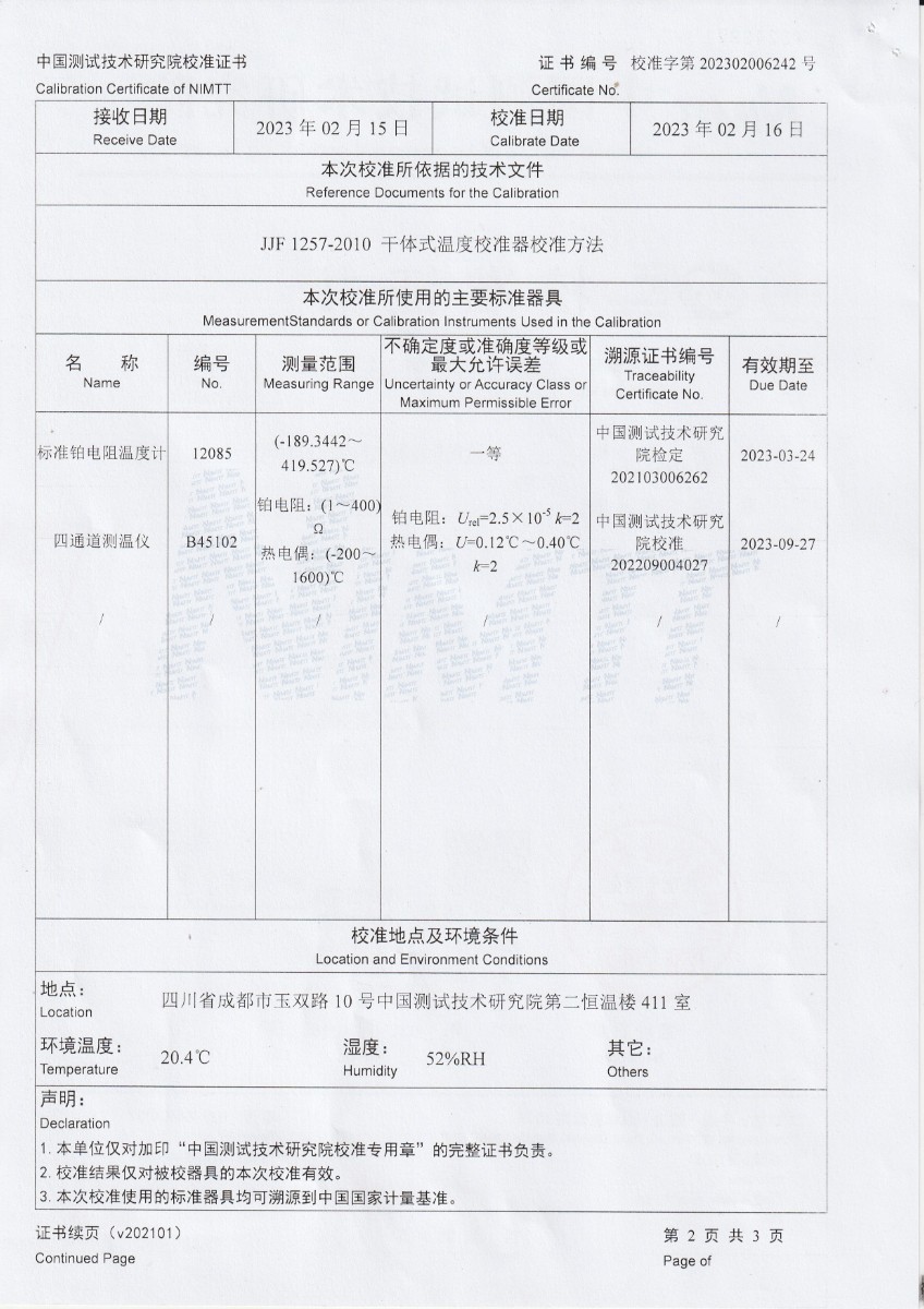 | 上一條:青島加侖檢測技術(shù)服務(wù)有限公司 黑體輻射源 校準證書 | 下一條:水三相點瓶凍制與保存裝置校準證書 |
