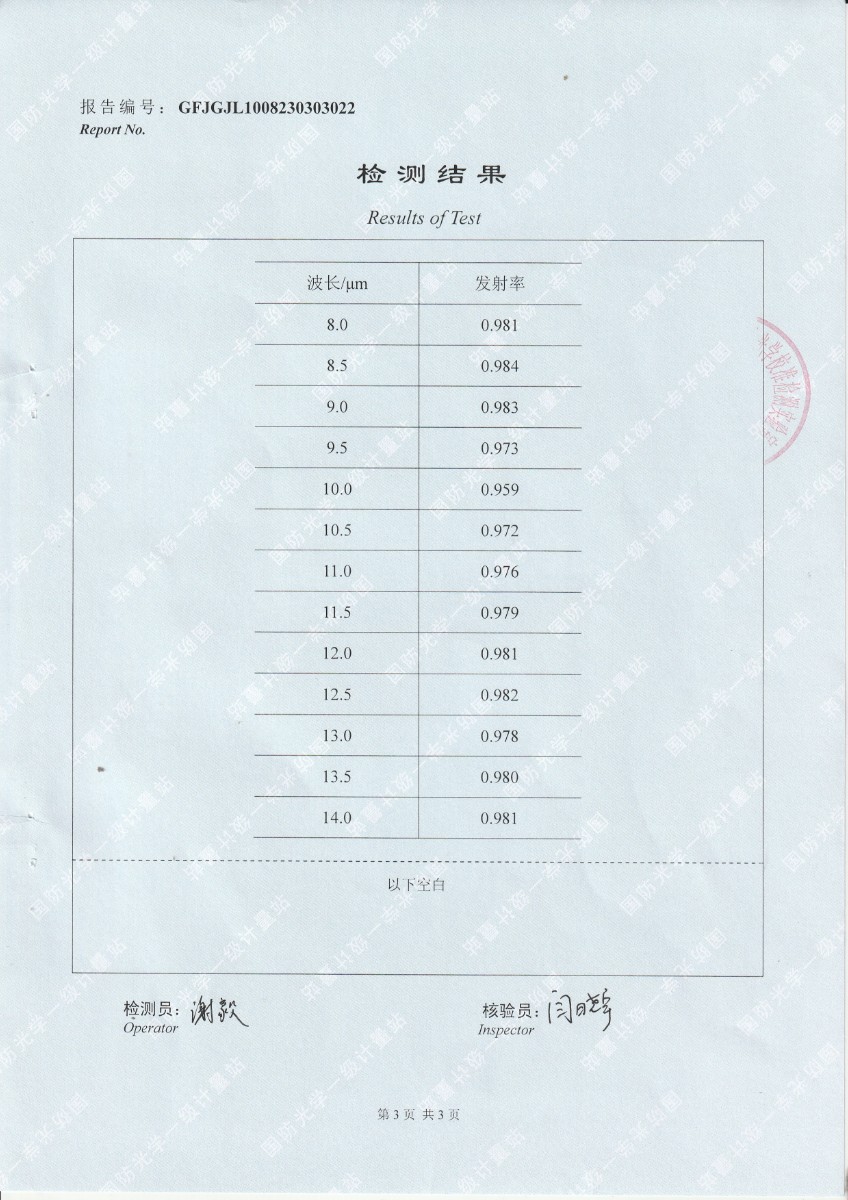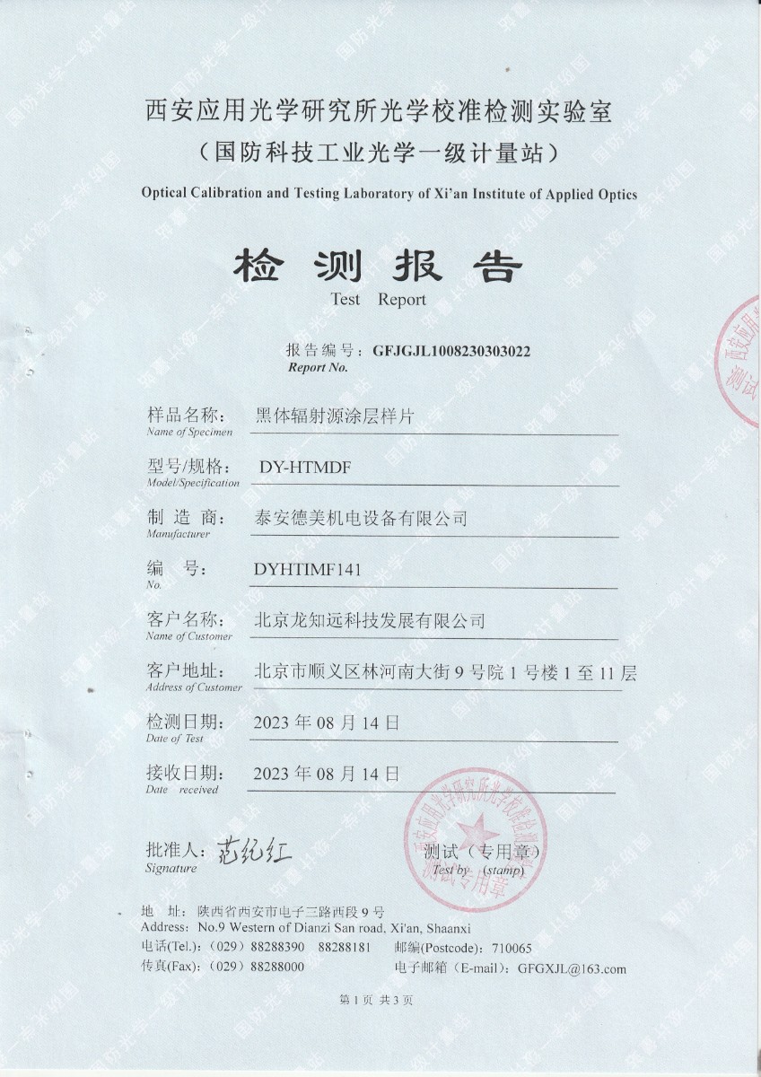 | 上一條:北京龍知遠(yuǎn)科技發(fā)展有限公司-黑體輻射源涂層樣片DYHT1MF140檢測報(bào)告 | 下一條:水三相點(diǎn)瓶凍制與保存裝置校準(zhǔn)證書 |