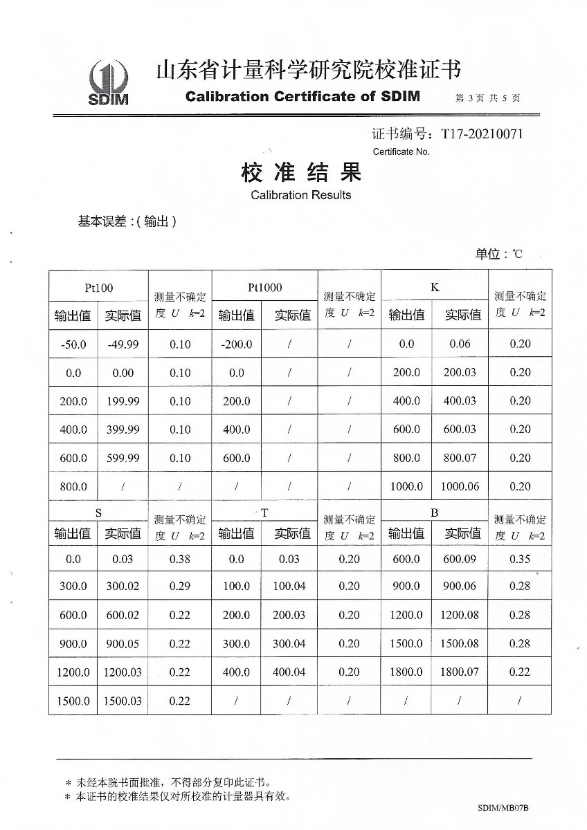 | 上一條:山東華源工程設(shè)備安裝有限公司-智能壓力校驗儀X210461 | 下一條:水三相點瓶凍制與保存裝置校準證書 |