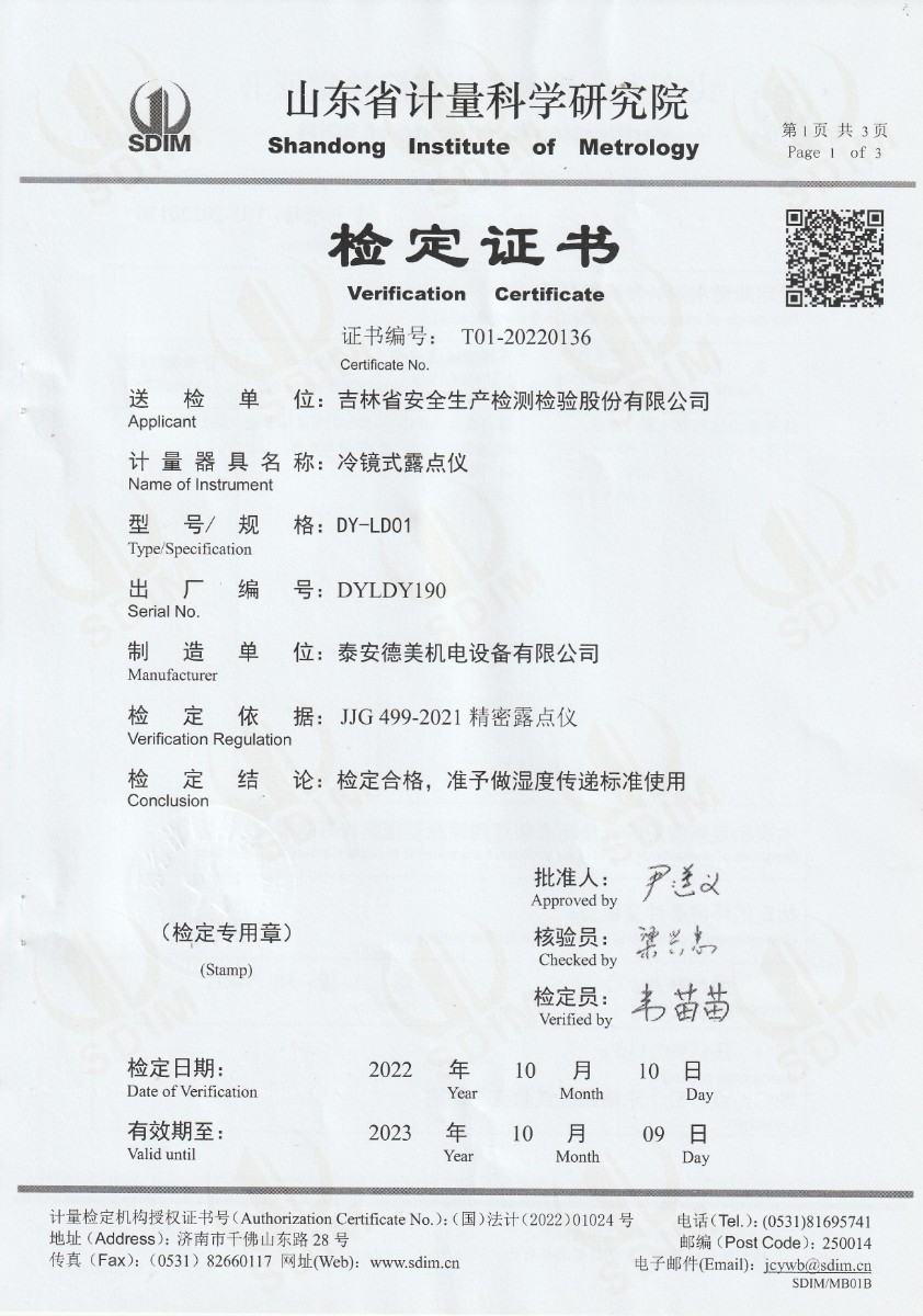 | 上一條:吉林省安全生產(chǎn)檢測(cè)檢驗(yàn)股份有限公司-冷鏡式露點(diǎn)儀校準(zhǔn)證書(shū) | 下一條:水三相點(diǎn)瓶?jī)鲋婆c保存裝置校準(zhǔn)證書(shū) |