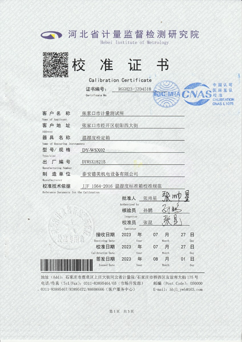 | 上一條:聞泰通訊股份有限公司-溫濕度檢定箱 | 下一條:水三相點(diǎn)瓶?jī)鲋婆c保存裝置校準(zhǔn)證書 |