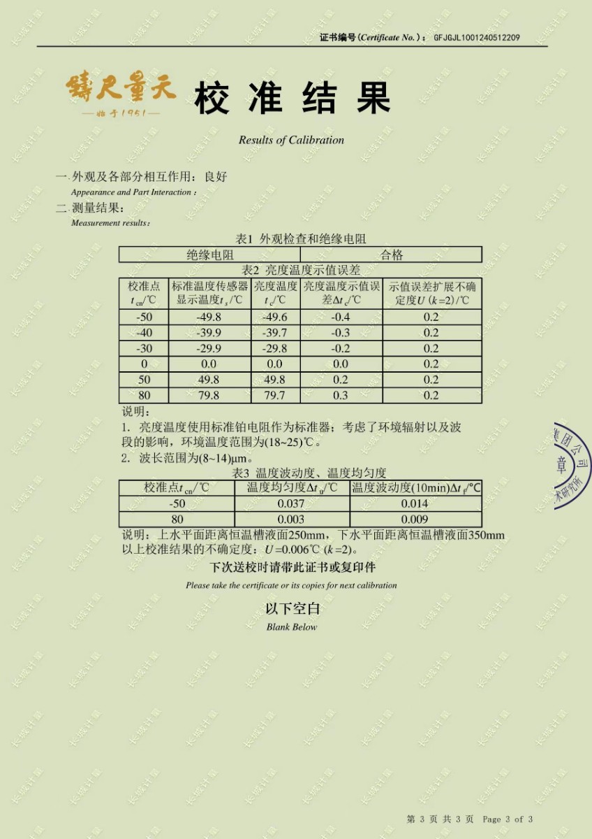 | 上一條:高精度低溫黑體241校準(zhǔn)證書 | 下一條:水三相點(diǎn)瓶?jī)鲋婆c保存裝置校準(zhǔn)證書 |