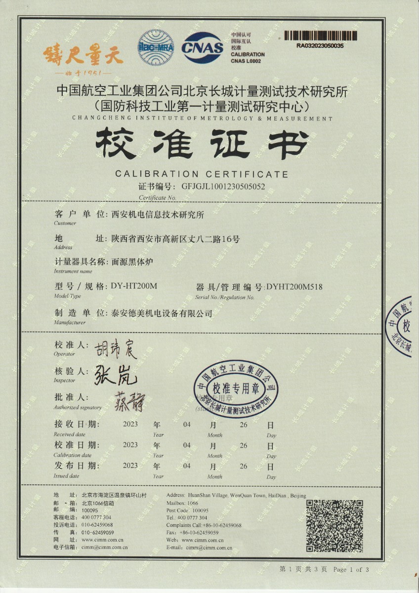 | 上一條:陜西紅馬科技有限公司 零點恒溫器 校準(zhǔn)證書 | 下一條:水三相點瓶凍制與保存裝置校準(zhǔn)證書 |
