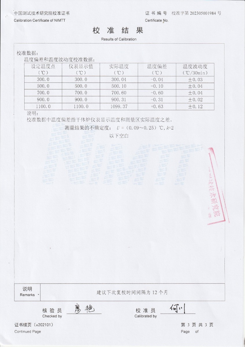 | 上一條:魯南中聯(lián)水泥有限公司 溫度校驗(yàn)儀 校準(zhǔn)證書 | 下一條:水三相點(diǎn)瓶凍制與保存裝置校準(zhǔn)證書 |