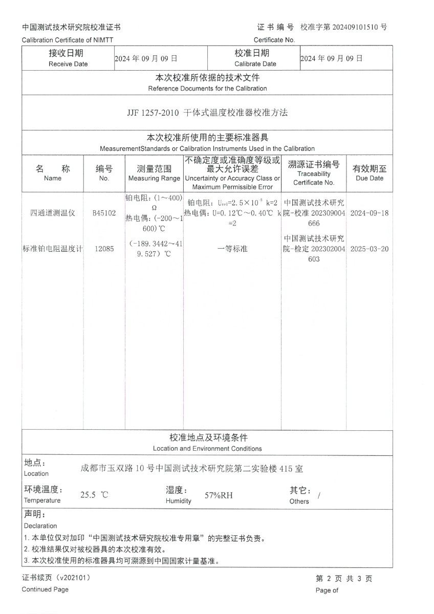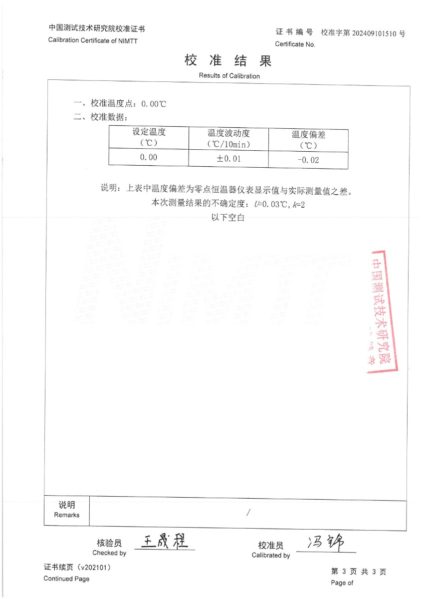 | 上一條:高溫干體爐(300~1200℃)校準(zhǔn)證書(shū) | 下一條:水三相點(diǎn)瓶?jī)鲋婆c保存裝置校準(zhǔn)證書(shū) |