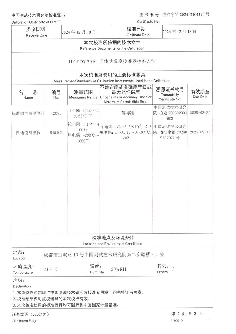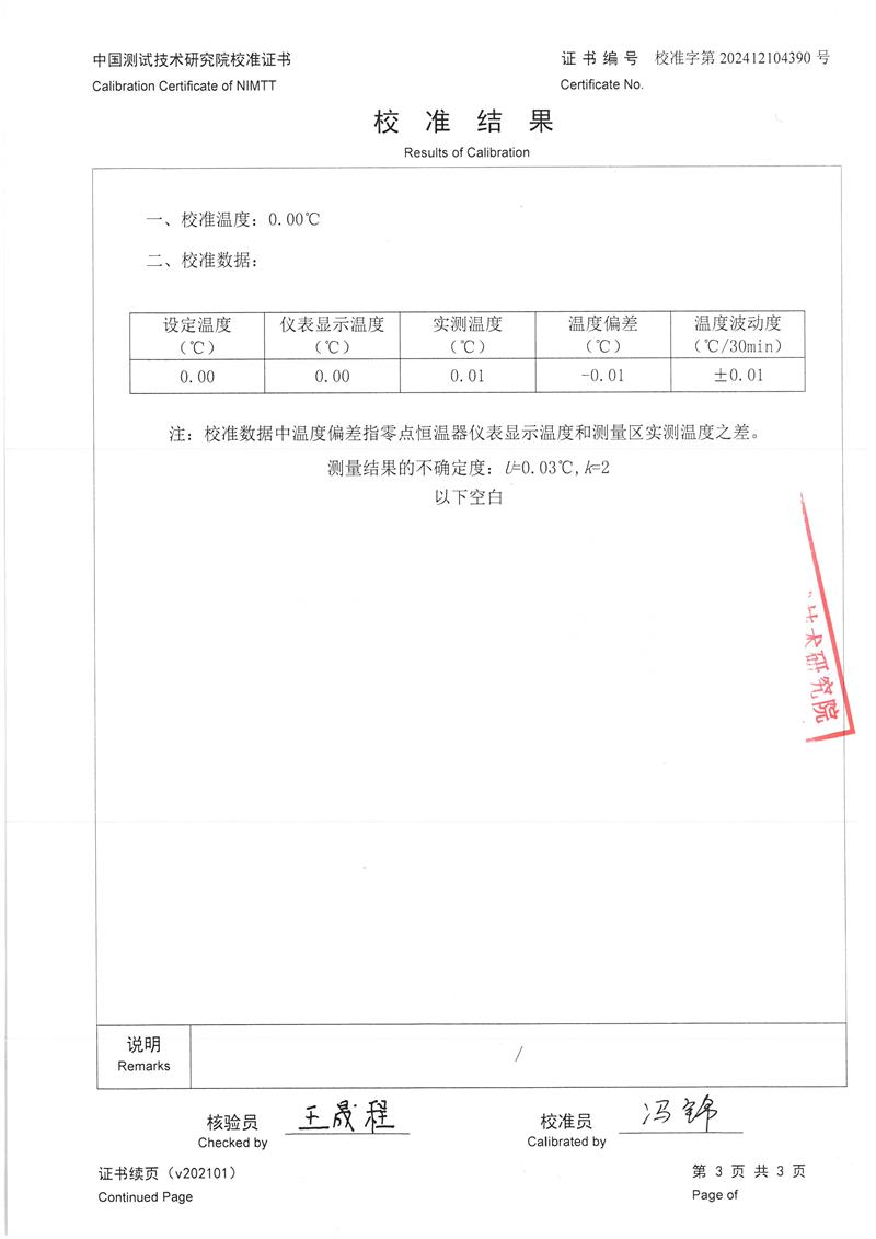 | 上一條:低溫浴式面源黑體爐(-50-80℃)校準(zhǔn)證書 | 下一條:溫度數(shù)據(jù)采集儀校準(zhǔn)證書 |