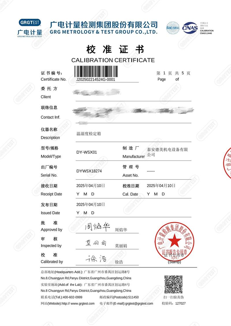 溫濕度檢定箱18274(-5~65℃)校準證書 2025-4-18 本文被閱讀 3636 次