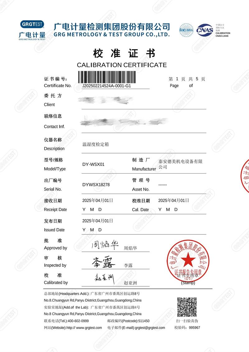 溫濕度檢定箱18278(-5~65℃)校準證書 2025-4-18 本文被閱讀 3763 次