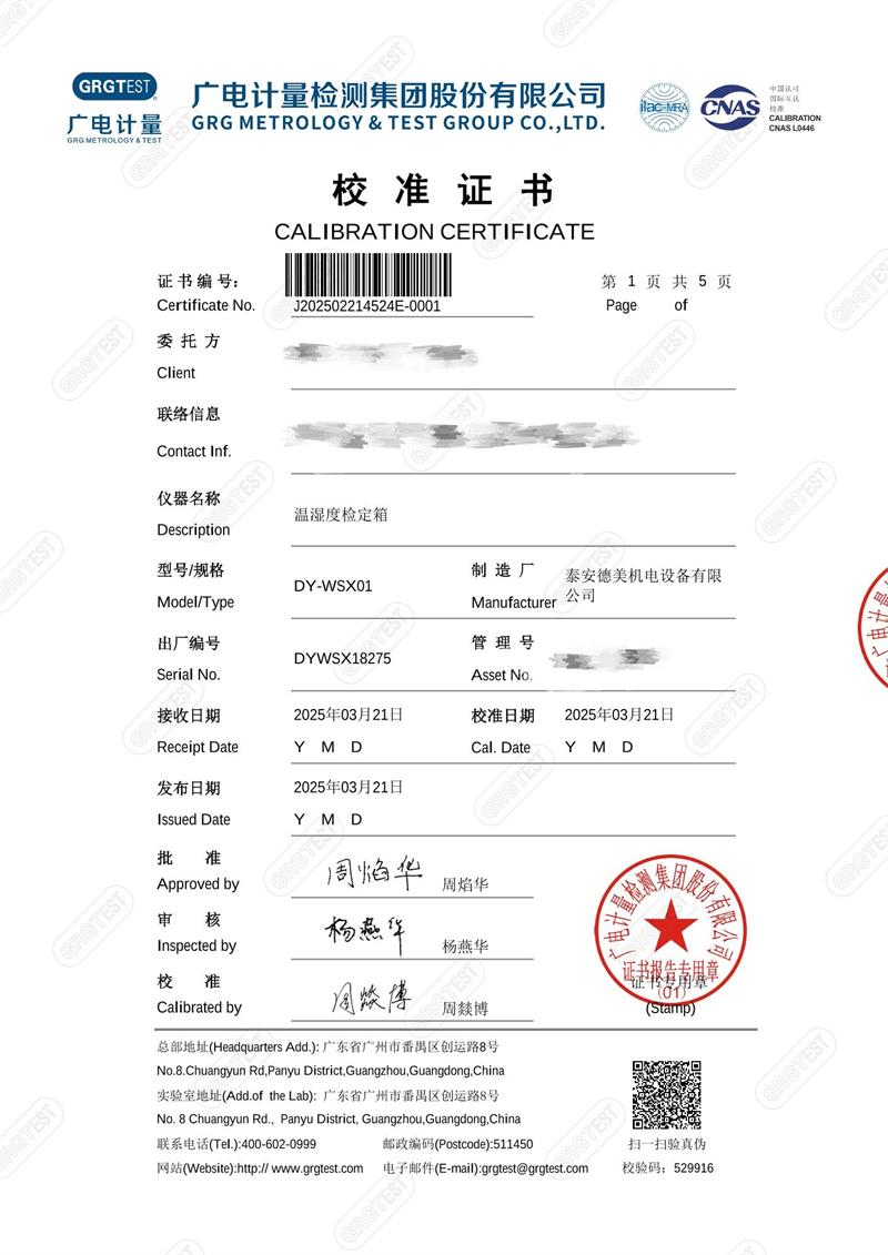 溫濕度檢定箱18275(-5~65℃)校準證書 2025-4-18 本文被閱讀 4558 次