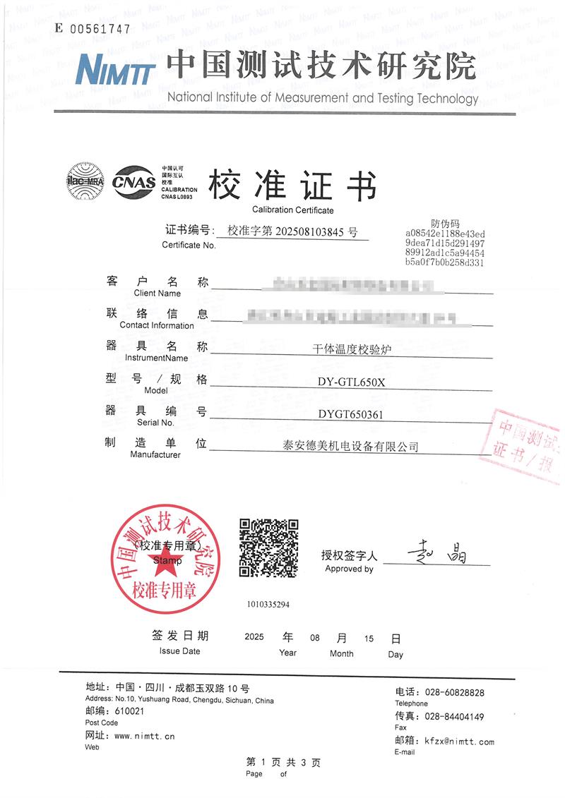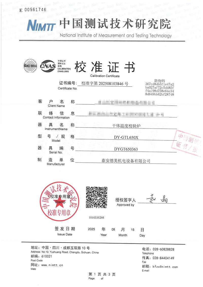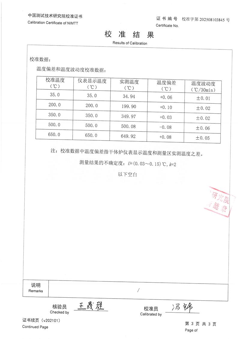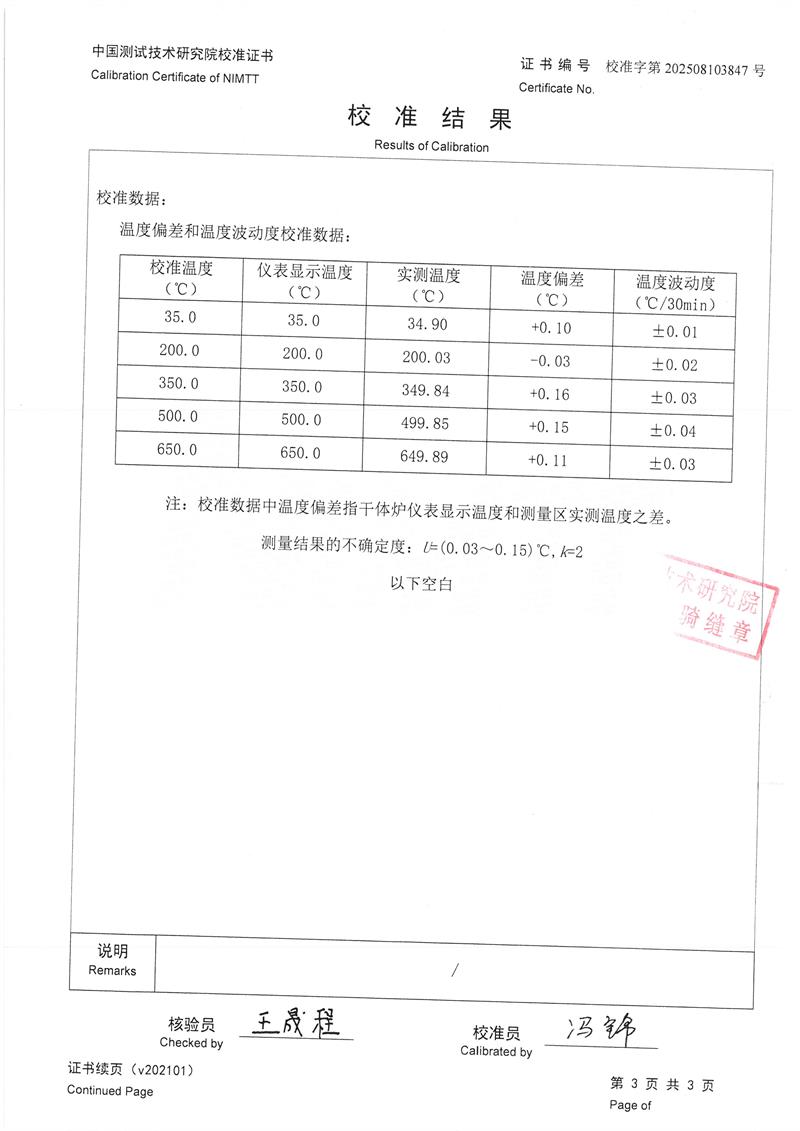 干體爐(室溫+5℃~650℃)校準證書 2025-8-20 本文被閱讀 3195 次