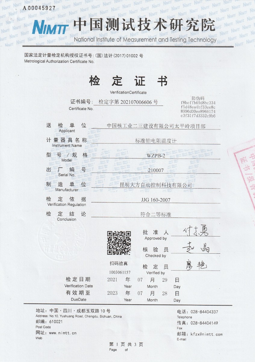 | 上一條:中國人民解放軍63672部隊-黑體輻射源 | 下一條:溫度數(shù)據(jù)采集儀校準(zhǔn)證書 |