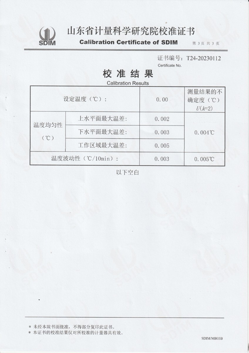 勝利油田東強機(jī)電設(shè)備制造有限公司 恒溫水槽 校準(zhǔn)證書 2023-3-25 本文被閱讀 12258 次