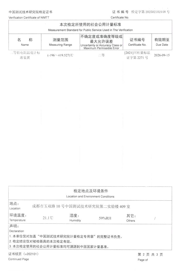 T分度補償導線檢定證書 2025-2-25 本文被閱讀 5114 次