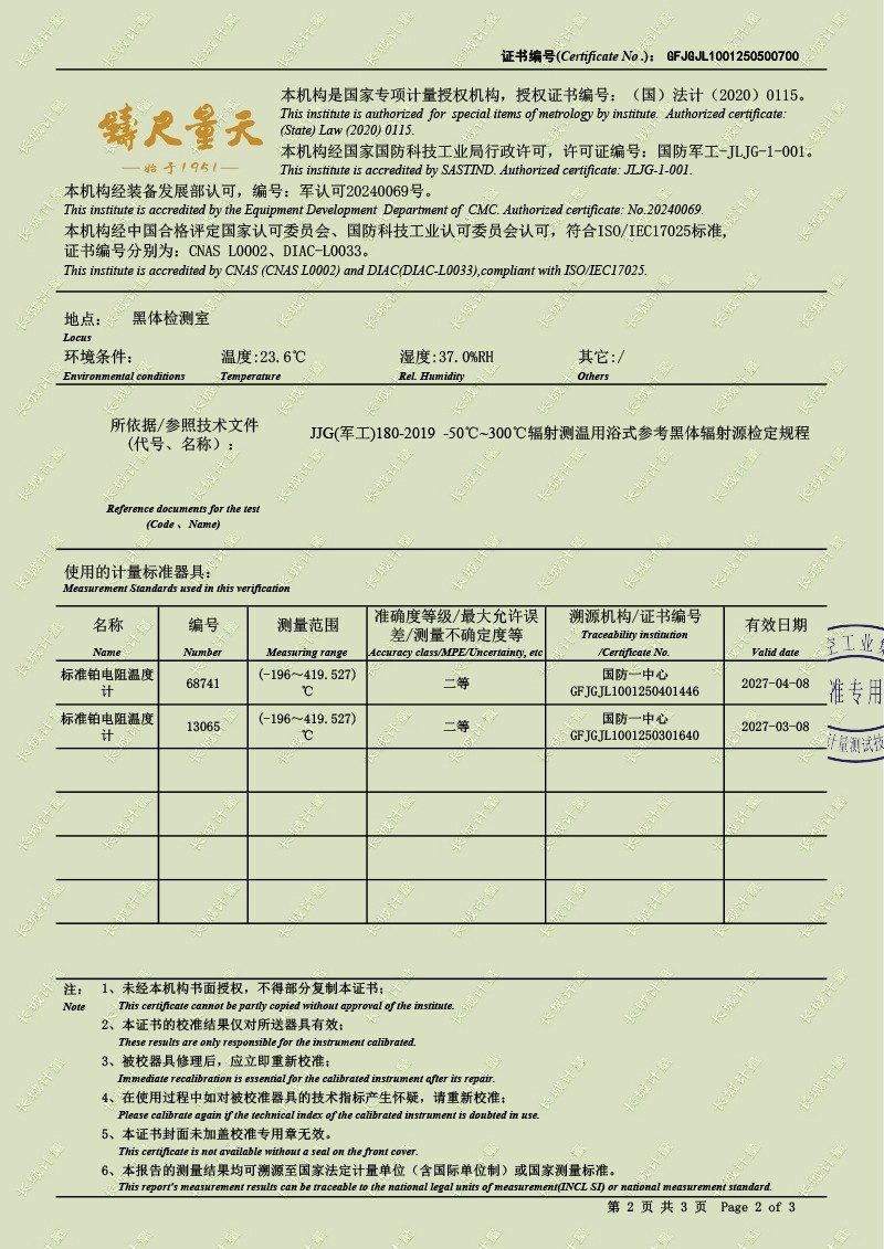 腔式黑體輻射源(-50-100℃)校準證書 2025-5-9 本文被閱讀 3556 次