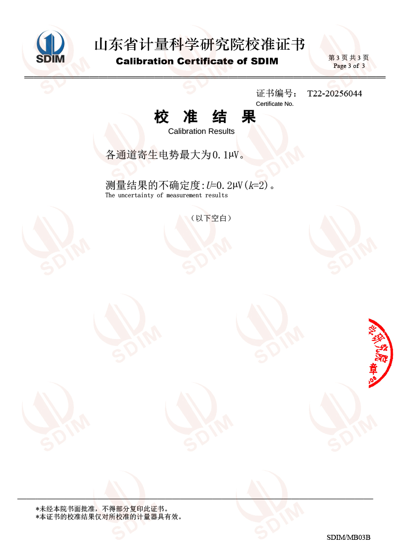 | 上一條:面源黑體爐(室溫+5-500℃)校準(zhǔn)證書 | 下一條:溫度數(shù)據(jù)采集儀校準(zhǔn)證書 |