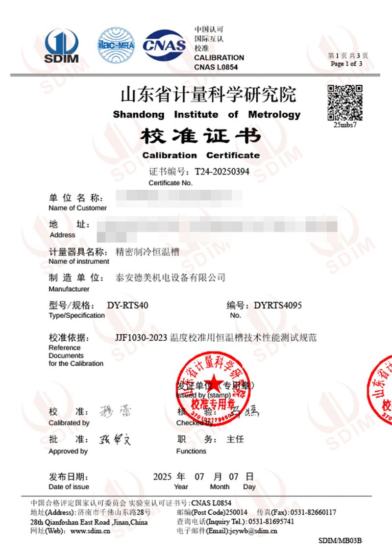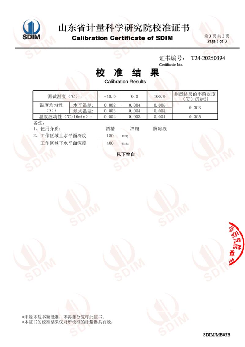 制冷恒溫槽(-40-100℃)校準證書 2025-7-10 本文被閱讀 3490 次