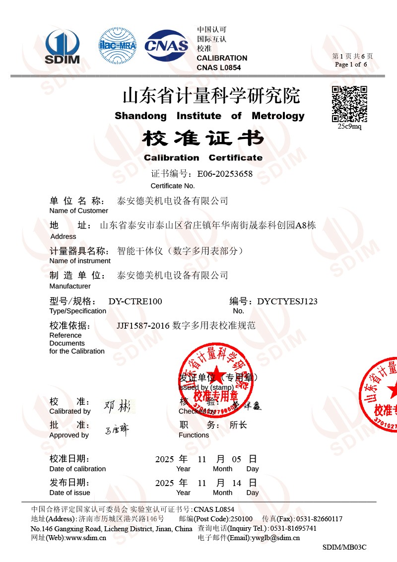 智能干體儀(六位半精度)校準證書 2025-11-14 本文被閱讀 1460 次