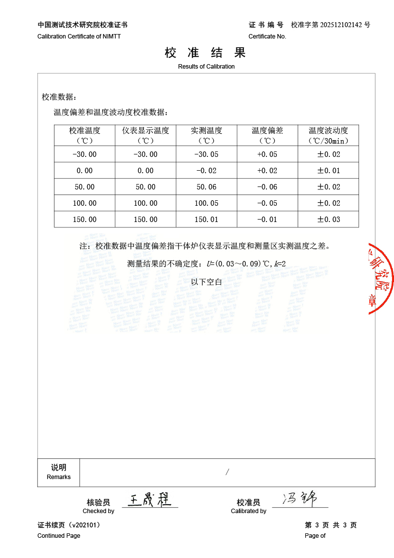 低溫干體爐校準(zhǔn)證書 2025-12-11 本文被閱讀 1113 次