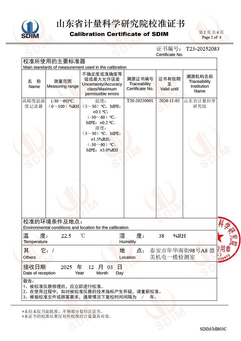 溫濕度檢定箱校準證書 2025-12-11 本文被閱讀 1558 次
