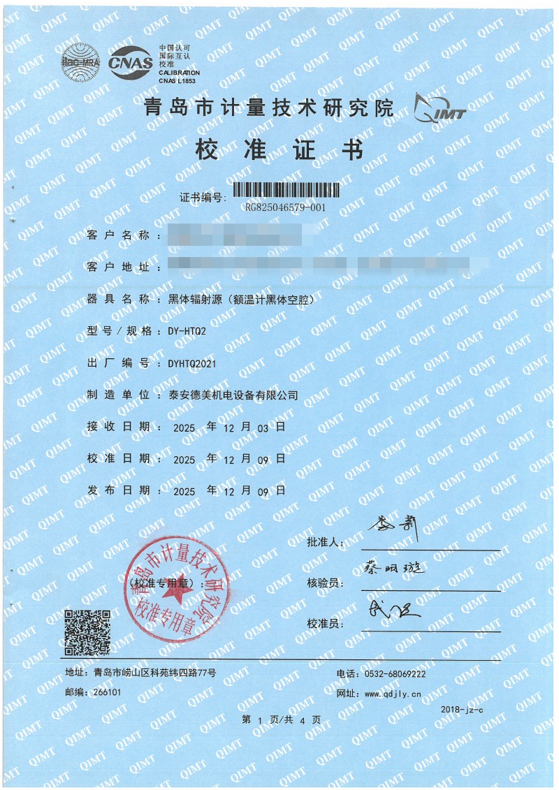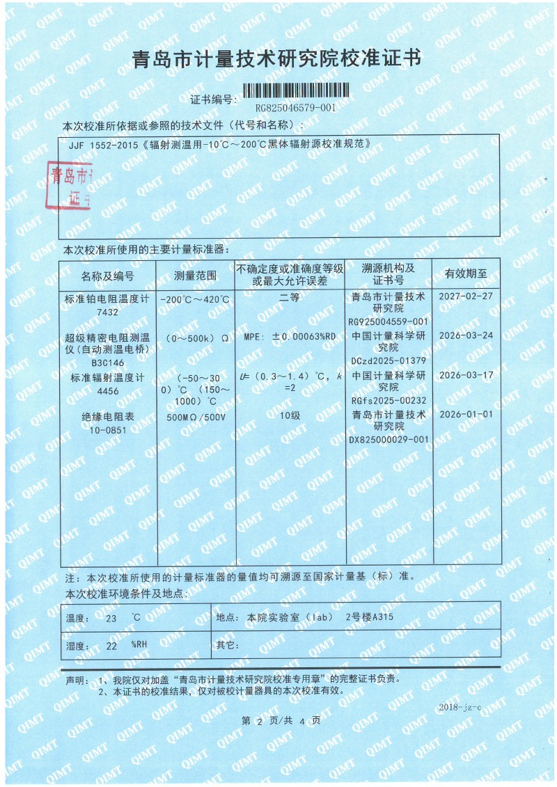 額溫計黑體空腔校準證書 2025-12-18 本文被閱讀 796 次
