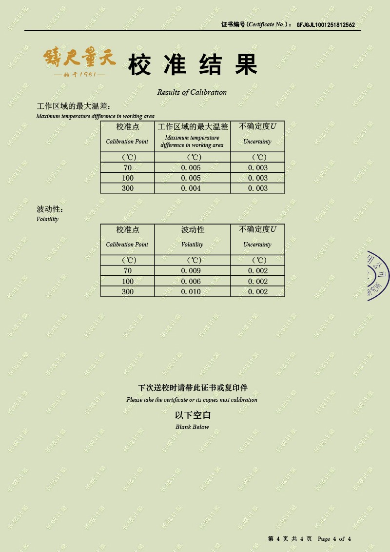 高精度恒溫油槽(70-300℃)校準證書 2025-6-25 本文被閱讀 3949 次