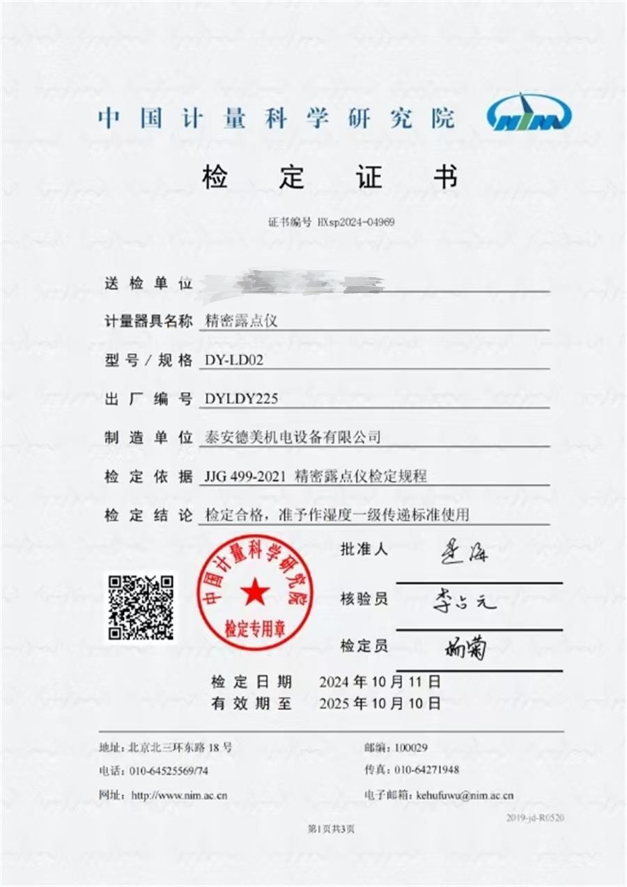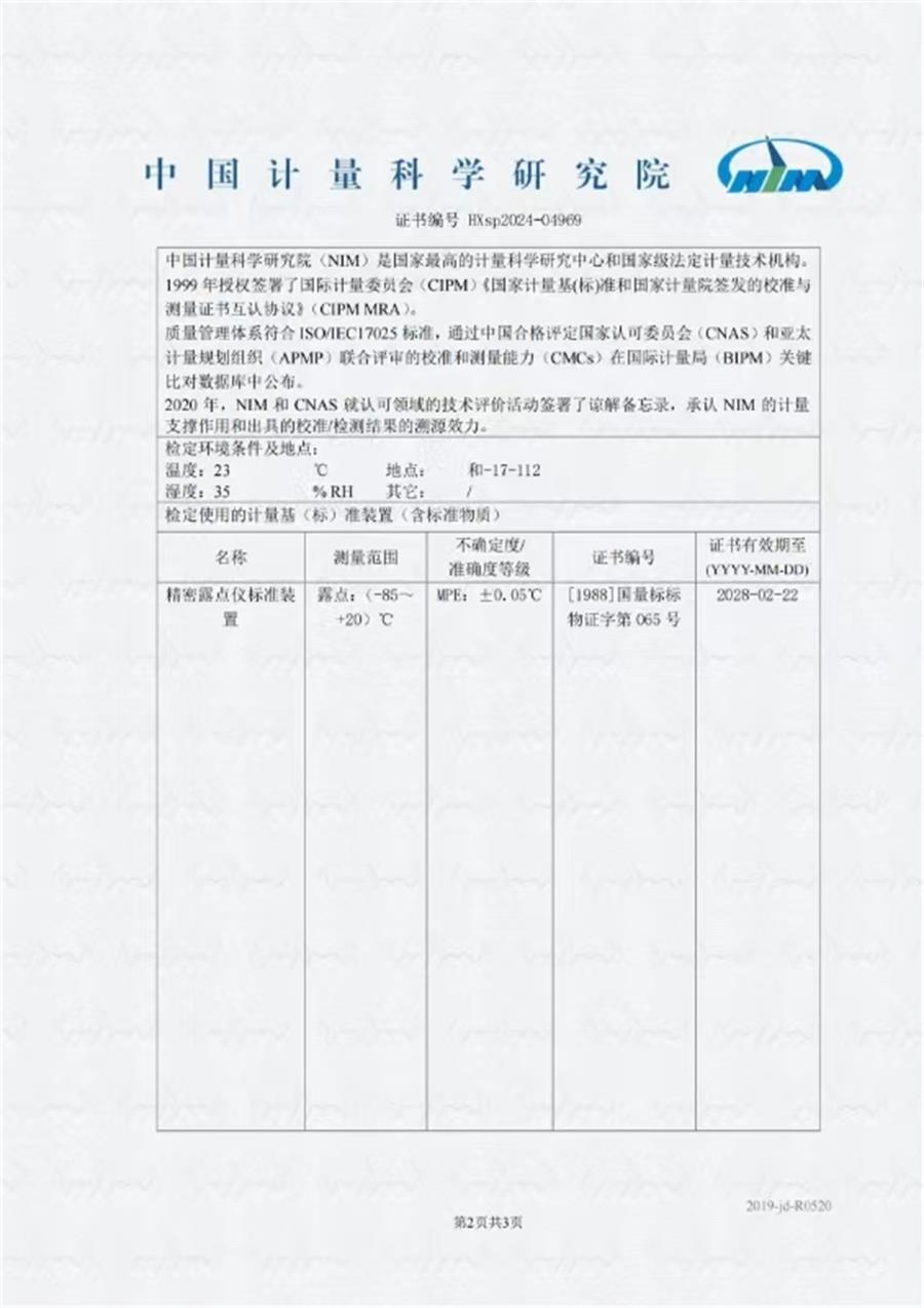 露點儀檢定證書 2024-11-6 本文被閱讀 6901 次