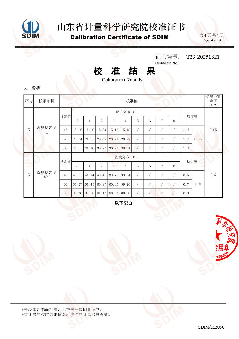便攜溫濕度檢定箱(5-50℃)校準(zhǔn)證書