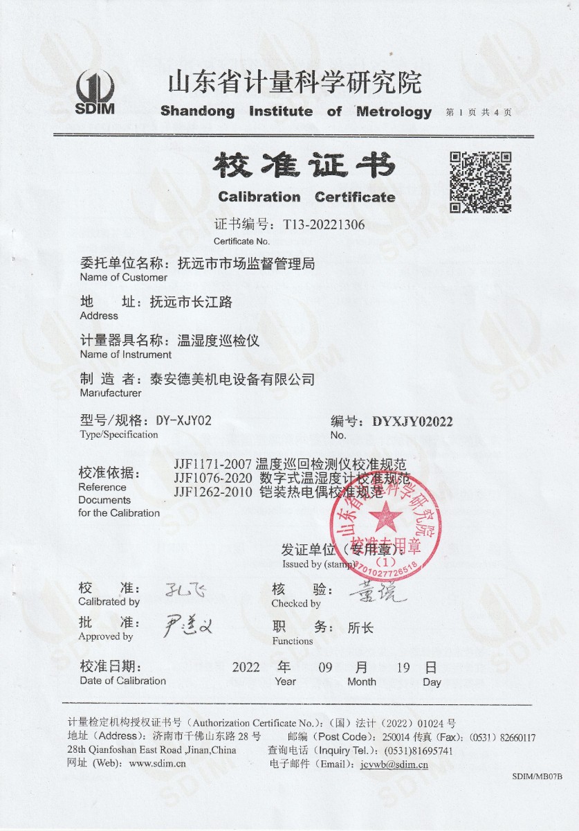 上一條:晶科能源(肥東)有限公司-冷鏡式露點儀校準證書下一條:溫度數(shù)據(jù)采集儀校準證書
